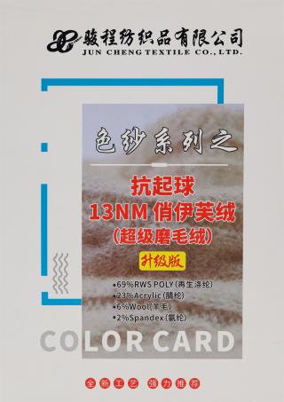 成分:6%羊毛 13%锦纶 33%再生涤纶 48%特纺纤维